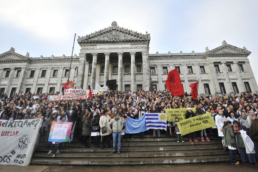 Frente a esto, los sindicatos del área metropolitana en principio Ades Montevideo, luego ADEMU, AFUTU Montevideo y a nivel nacional ATES, así como varias filiales de la FENAPES (que definió paralizaciones de varios días), por impulsaron una huelga que llevaba una semana de paralizaciones, en reclamo de mayor presupuesto para la educación (6% del PIB), condiciones laborales dignas y salario de $30.000 (media canasta).