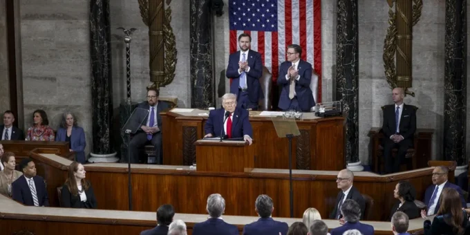 Trump reiteró todos los tópicos respecto a los “crímenes” de los inmigrantes, pero notablemente no hizo mención al ICE (policía migratoria militarizada) ni a las marchas y huelgas en Minnesota. También llamó la atención que no reivindicara a Stephen Miller ni a Kristi Noem -los principales impulsores y ejecutantes de la guerra a los indocumentados y los asesinatos en Minneapolis-.