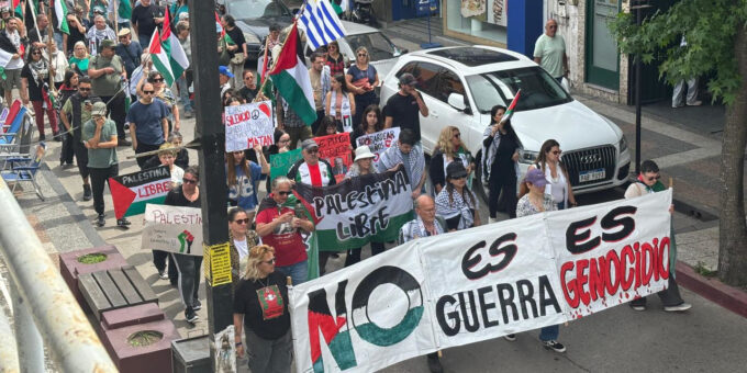 El 11 de octubre pasado se realizó en la ciudad de Florida una importante marcha en solidaridad con Palestina portando una pancarta que indicaba: No es guerra es Genocidio. Más de 70 personas se movilizaron reclamando al gobierno la ruptura de relaciones con Israel, lo cual es reflejo del malestar de una parte de la militancia frenteamplista que ha hecho suya la causa palestina con un gobierno que ha demostrado hasta el hartazgo su complicidad con el Estado sionista de Israel. El día anterior se realizó una marcha de la comunidad LGTB donde se realizó una performance por Palestina donde fuimos invitados a participar y lo hicimos en medio de un acto multitudinario. Las movilizaciones fueron precedidas por una intensa actividad en la prensa de la ciudad.