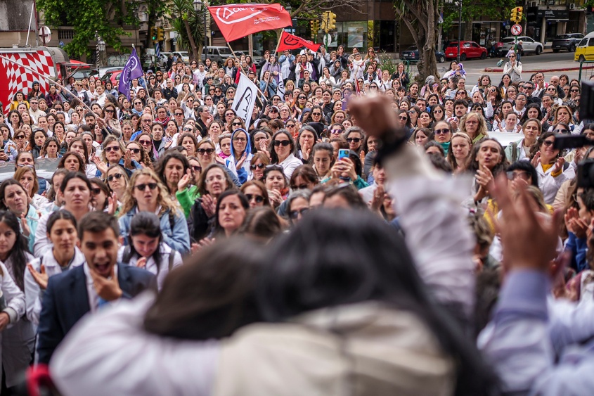 La rebelión de los maestros entronca con esa lucha de la juventud, que se expresó muy nítidamente en el acto del PIT-CNT en el marco del paro parcial del 29 de octubre: en esa oportunidad tomó la palabra la delegada estudiantil del Magisterio, que estaba ocupado en ese momento por 16 días. Aunque no estaba aprobada su oratoria, la estudiante tomó el micrófono y denunció al gobierno y “su presupuesto de espaldas a la clase trabajadora”, “el ajuste no pasará”.